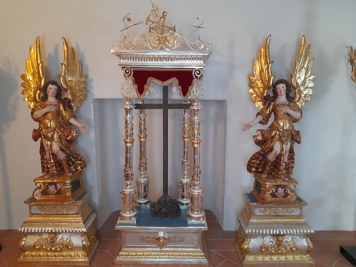 All’ingresso del borgo antico, poco distante, non perdetevi la chiesetta della Crocetta dove è installato il significativo ciclo di 5 opere detto Della Misericordia del Maestro Alessandro Nastasio a memoria delle vittime del Covid.