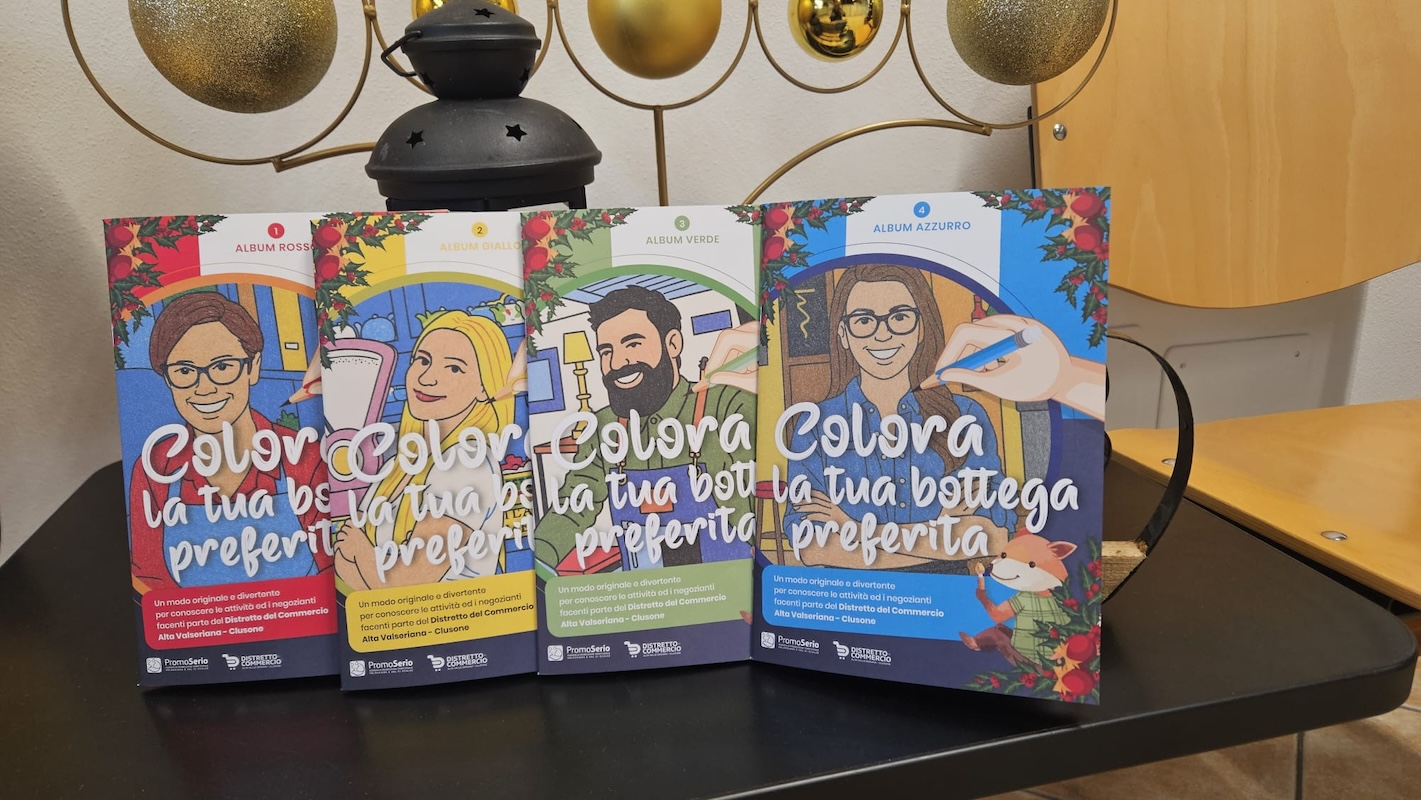 In occasione delle festività è stata infatti realizzata una collana di album da colorare – disponibile nelle quattro versioni rosso, giallo, verde e azzurro – che raccoglie i ritratti illustrati di 84 operatori commerciali attivi nei comuni di Clusone, Fino del Monte, Rovetta, Onore, Songavazzo, Piario, Ponte Nossa, Parre e Gorno. Con un linguaggio semplice e giocoso, gli album invitano grandi e piccoli a scoprire da vicino i volti dei negozianti, offrendo uno sguardo inedito e divertente sul tessuto commerciale locale e rafforzando il senso di appartenenza alla comunità.