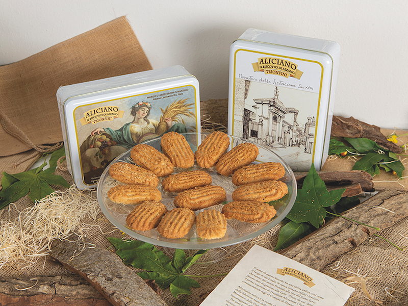 La prima tappa di questo dolce viaggio porta ad Alzano Lombardo, dove la storia dell’Aliciano ha inizio nel silenzio, tra le mura di un convento di clausura. «La ricetta mi è stata regalata dalle monache», racconta Giuseppe Trionfini, titolare dell’omonimo Panificio, attività storica di Regione Lombardia, che ha riportato in vita questo biscotto a base di farina 0 e integrale, nocciole, burro, zucchero e uova. Da quel dono che è eredità preziosa è nato un prodotto divenuto simbolo di Alzano. Ogni anno Trionfini realizza una scatola di latta illustrata, oggetto da collezione: quest’anno raffigura la Basilica di San Martino sotto una fitta nevicata, omaggio al borgo e alla sua storia. Nel tempo sono state realizzate 25 scatole, ciascuna con un dettaglio del paese, perché, come dice Giuseppe, «su ogni confezione c’è un pezzetto del nostro paese». E quelle scatole viaggiano: «Abbiamo spedito in Svizzera, in California, in Australia, anche in Cina. Spesso sono parenti che inviano un piccolo pezzo di Alzano ai loro familiari lontani». Dentro c’è più di un biscotto: c’è l’idea che il gusto possa tenere unita una comunità.