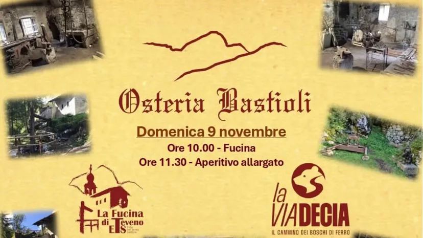 Alle 11.30 aperitivo allargato, presso l’osteria Bastioli a Teveno, ( costo: 12 euro, prenotazioni entro venerdì 7 Novembre direttamente presso l’Osteria Bastioli )