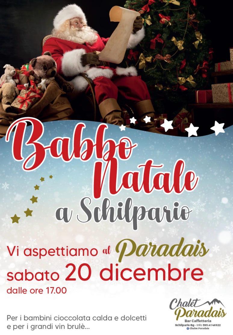 Sabato 20 dicembre, Babbo Natale vi aspetta allo Chalet Paradais a Schilpario alle ore 17.00 , per incontrare tutti i bambini che passeranno a trovarlo, omaggiandoli di caramelle e cioccolata calda. Vin brulè anche per i più grandi.