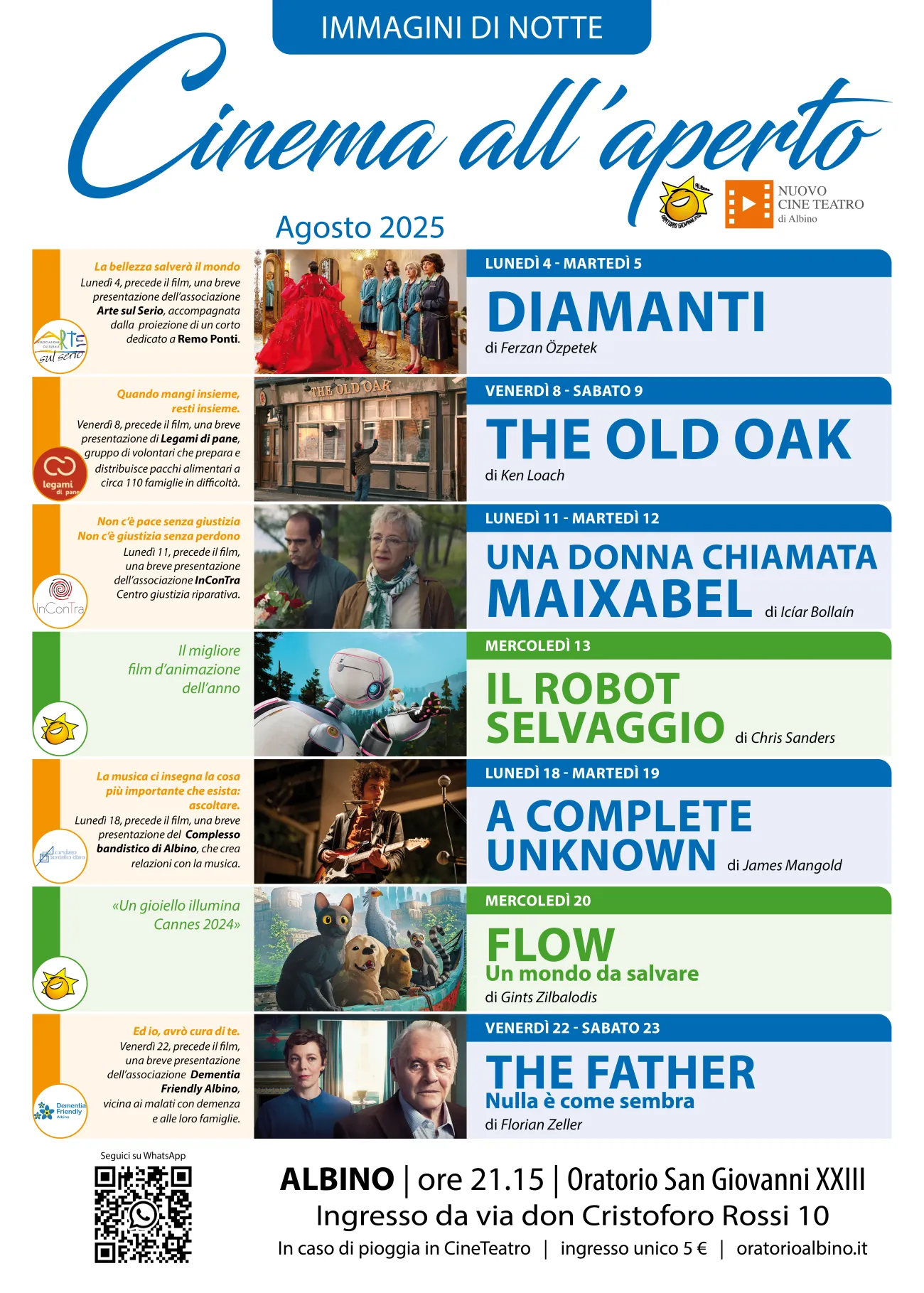 In caso di maltempo le proiezioni si terranno al Nuovo Cineteatro di Albino.