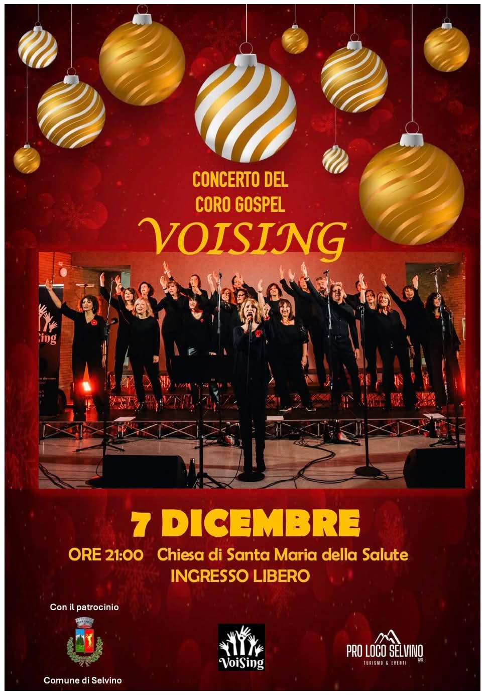 Domenica 7 dicembre 2025 alle ore 21.00 presso la Chiesa di Santa Maria della Salute in Via Talpino a Selvino è in programma il coinvolgente Concerto Gospel Voising – Chorus on the Move.