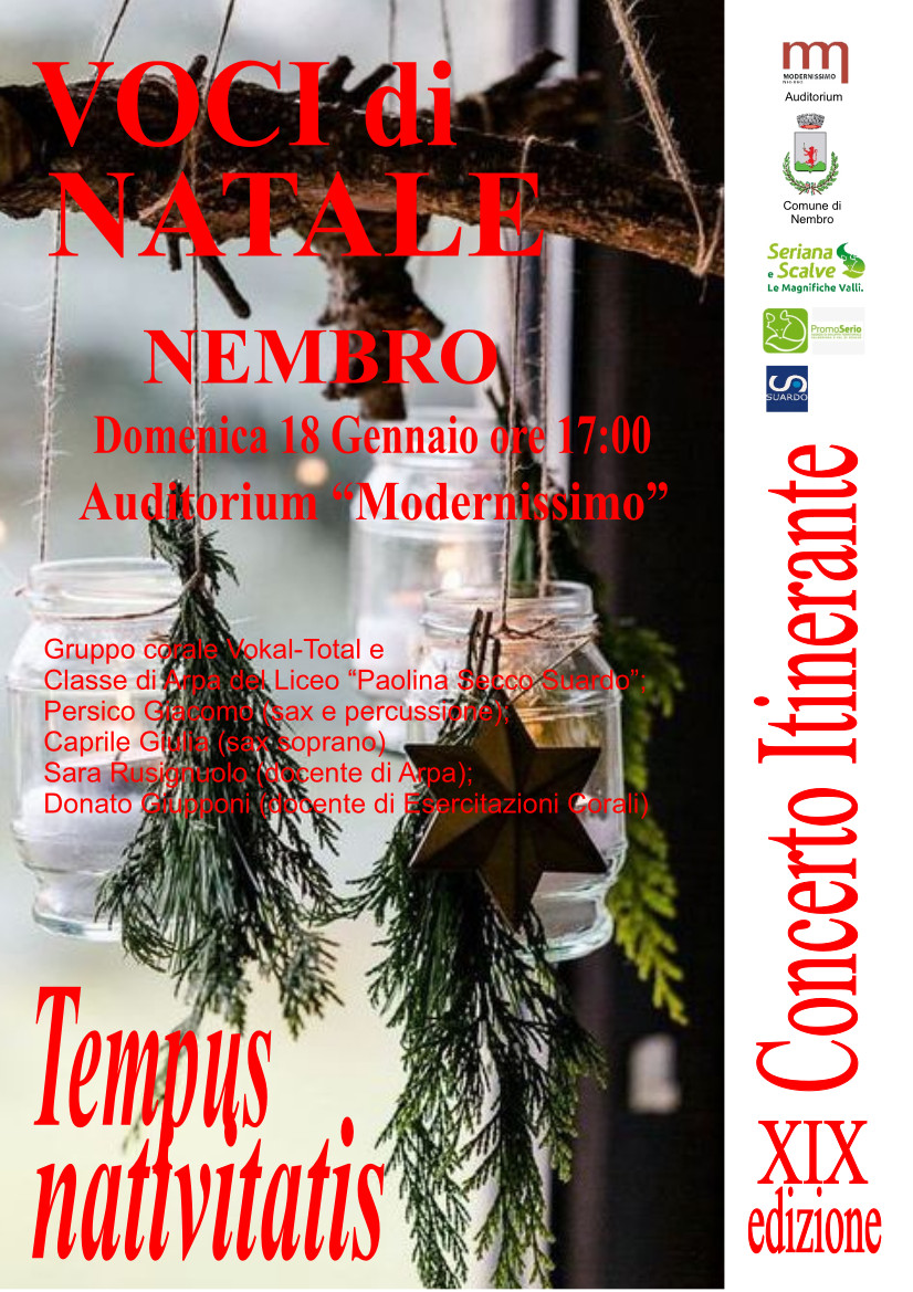 Appuntamento alle ore 17.00 presso l’Auditorium Modernissimo di Nembro.