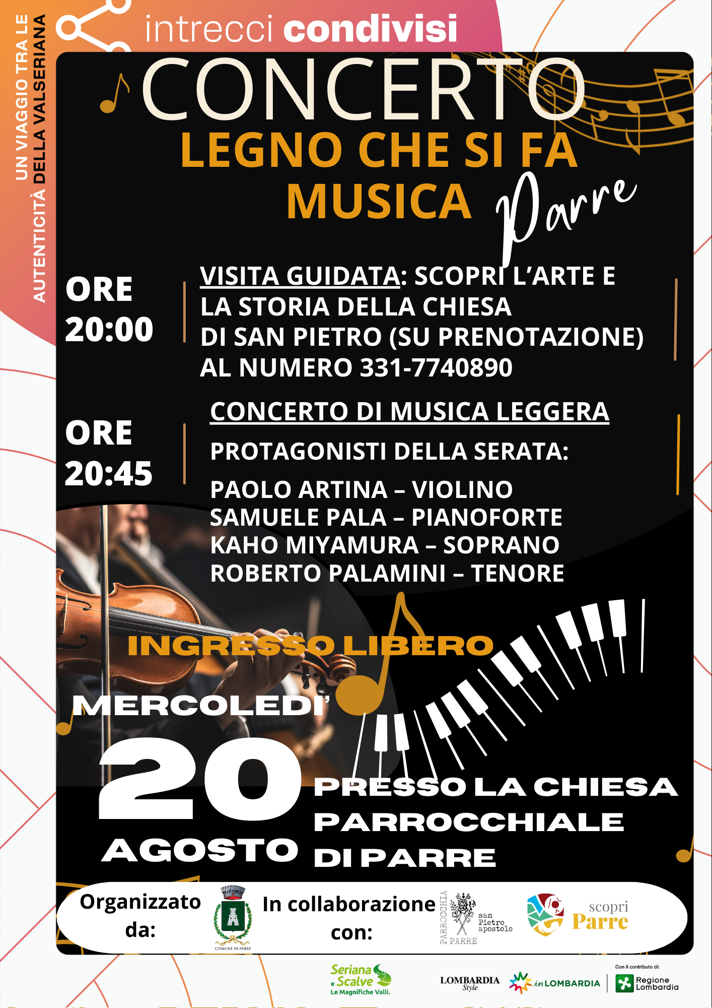 All’interno del palinsesto di eventi di Intrecci Condivisi, mercoledì 20 agosto è in programma un appuntamento musicale a Parre: