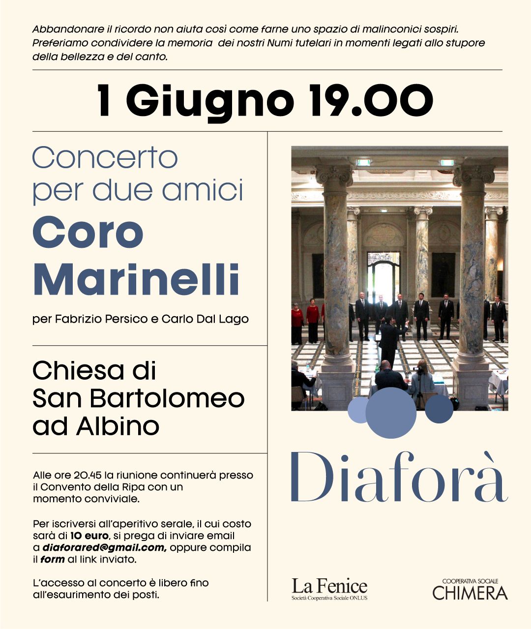 Domenica 01 giugno alle 19.00 presso la Chiesa di San Bartolomeo ad Albino è in programma il “Concerto per due amici – Coro Marinelli”.