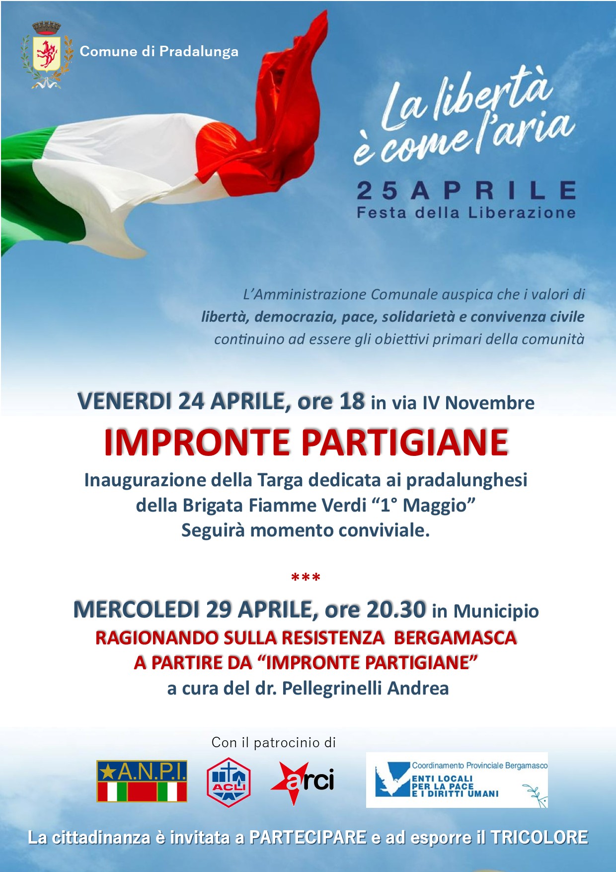 L’Amministrazione Comunale di Pradalunga propone due manifestazioni nell’ambito della commemorazione del 25 aprile.