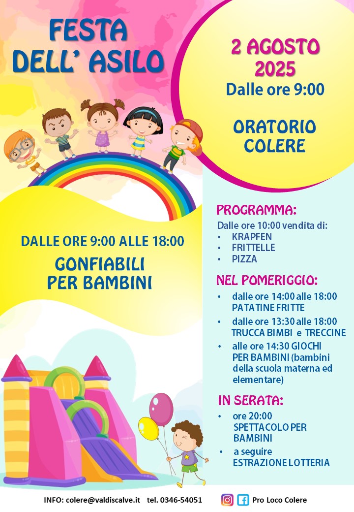 Dalle 10.00 vendita di krapfen, frittelle e pizza, e durante tutta la giornata, per i bambini, gonfiabili e nel pomeriggio merenda e giochi, truccabimbi, treccine e molto altro ancora.