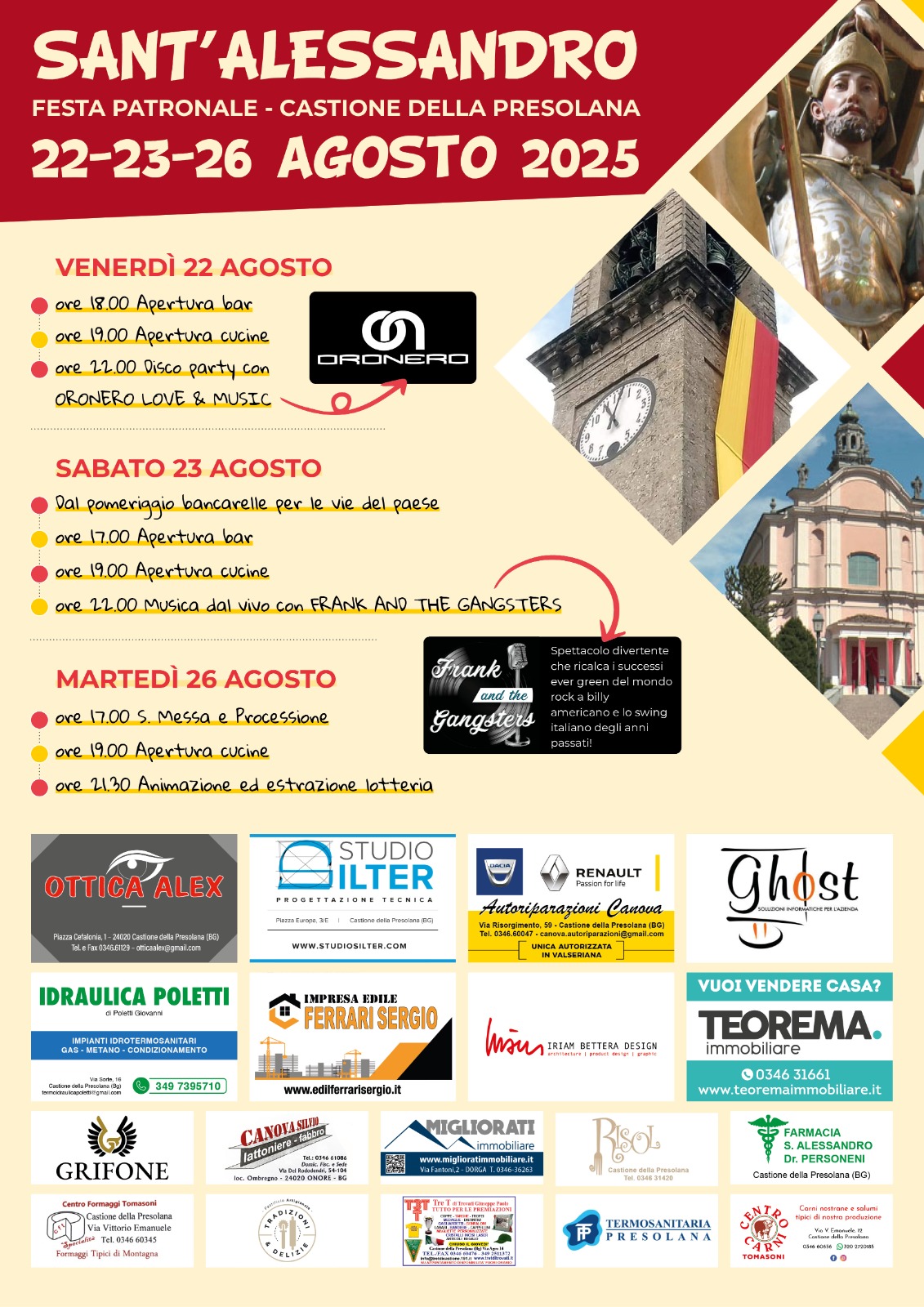 Tre giorni di festa ad animare la comunità di Castione della Presolana in onore del Patrono Sant’Alessandro.