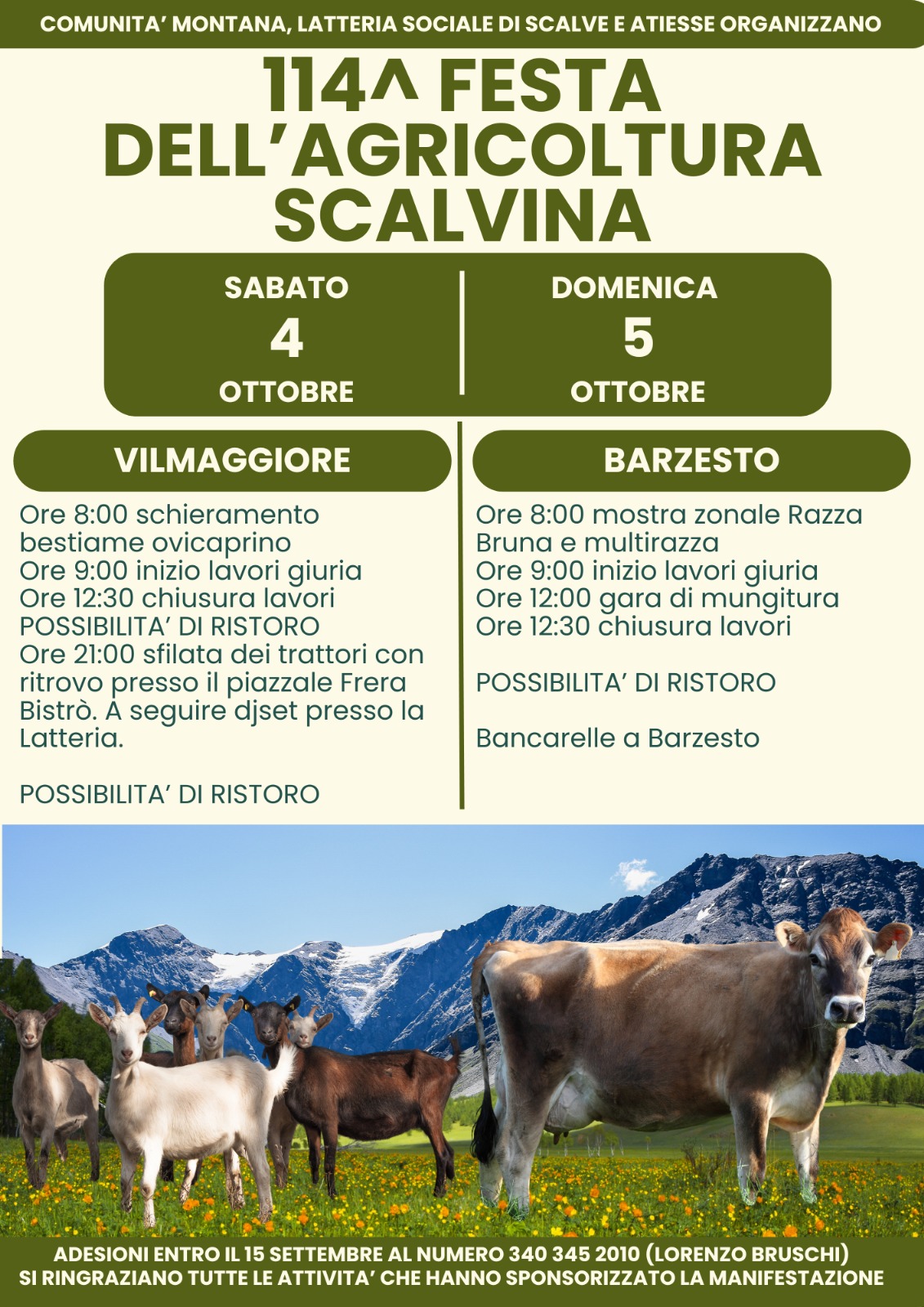 Sabato 4 e domenica 5 ottobre si terrà l’edizione 2025 della Fiera del Bestiame e dell’Agricoltura Scalvina nei campi di fronte alla Latteria Sociale di Scalve.