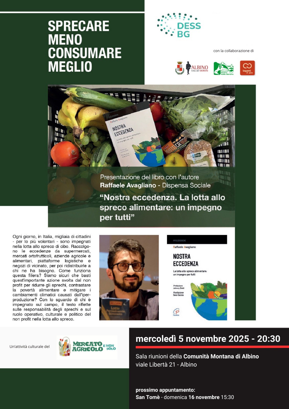 Durante la serata, verrà presentato il libro “Nostra eccedenza. La lotta allo spreco alimentare: un impegno per tutti”, a cura dell’autore Raffaele Avagliano.