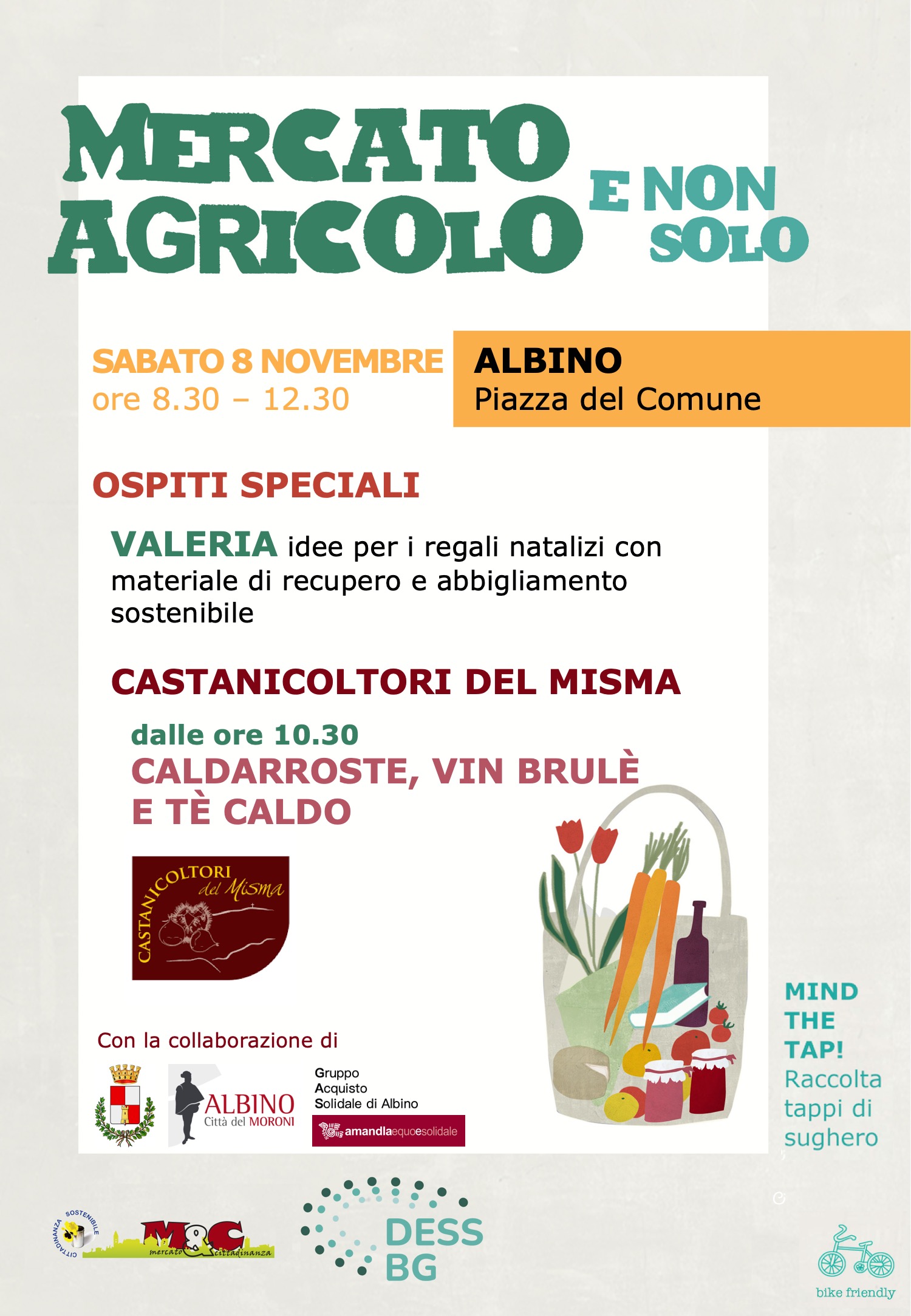 Si ricorda anche l’incontro organizzato dal Dess che si terrà il 5 novembre ad Albino, dove verrà presentato il libro intitolato “Nostra eccedenza” di Raffaele Avagliano e si dialogherà sull’importante tema dello spreco alimentare.