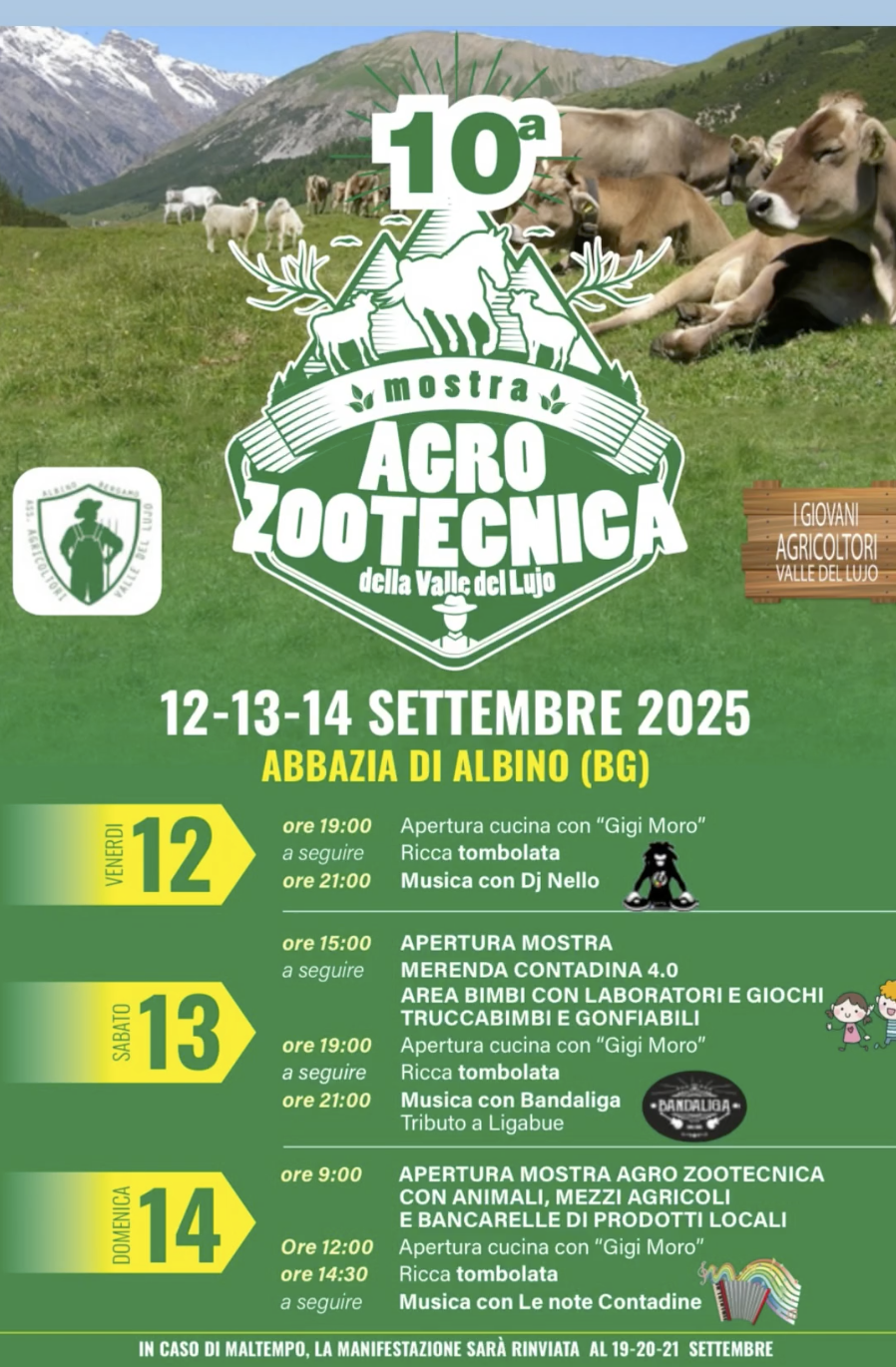 Torna in Valle del Lujo la 10^ edizione della mostra agro-zootecnica. Si svolgerà ad Abbazia di Albino da venerdì 12 settembre a domenica 14 settembre.