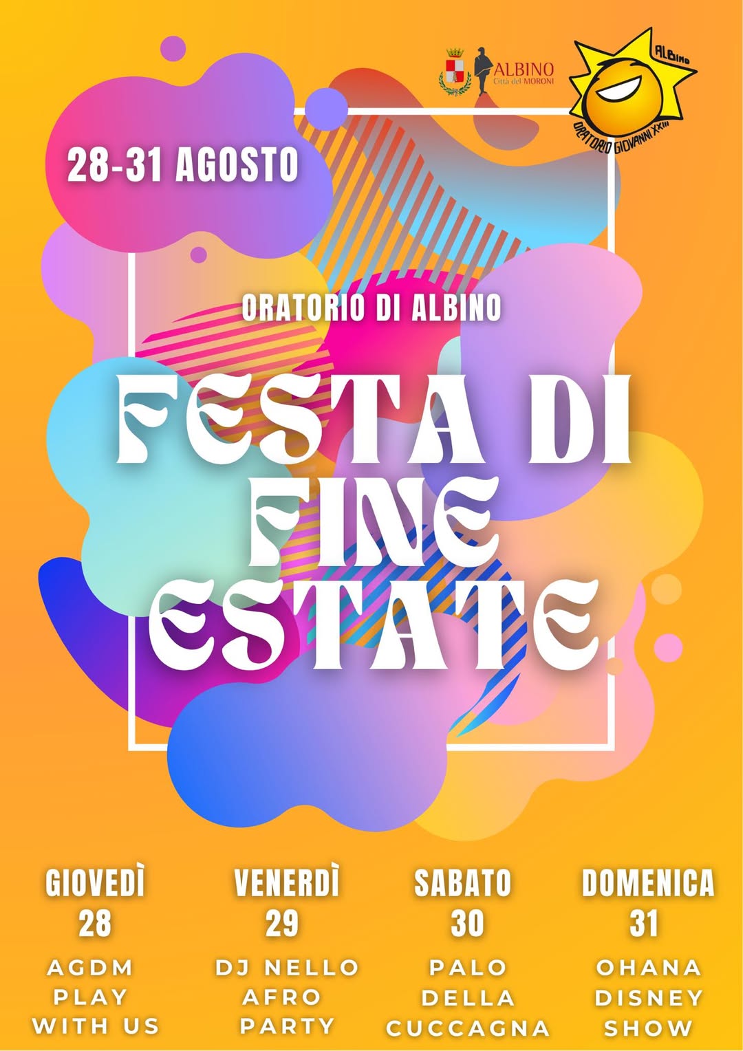 Da giovedì 28 a domenica 31 agosto presso l’ Oratorio San Giovanni XXIII di Albino è in programma la “Festa di fine estate”, con serate coinvolgenti per tutti/e.
