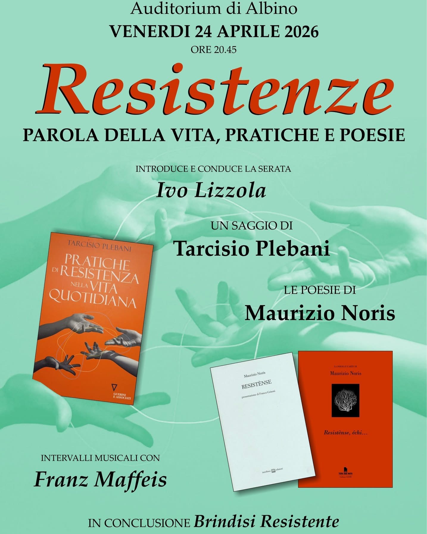 Venerdì 24 aprile 2026, dalle ore 20.45, presso l’Auditorium di Albino, si terrà una serata di rilievo dedicata al tema della resistenza, in occasione delle celebrazioni del mese di aprile.