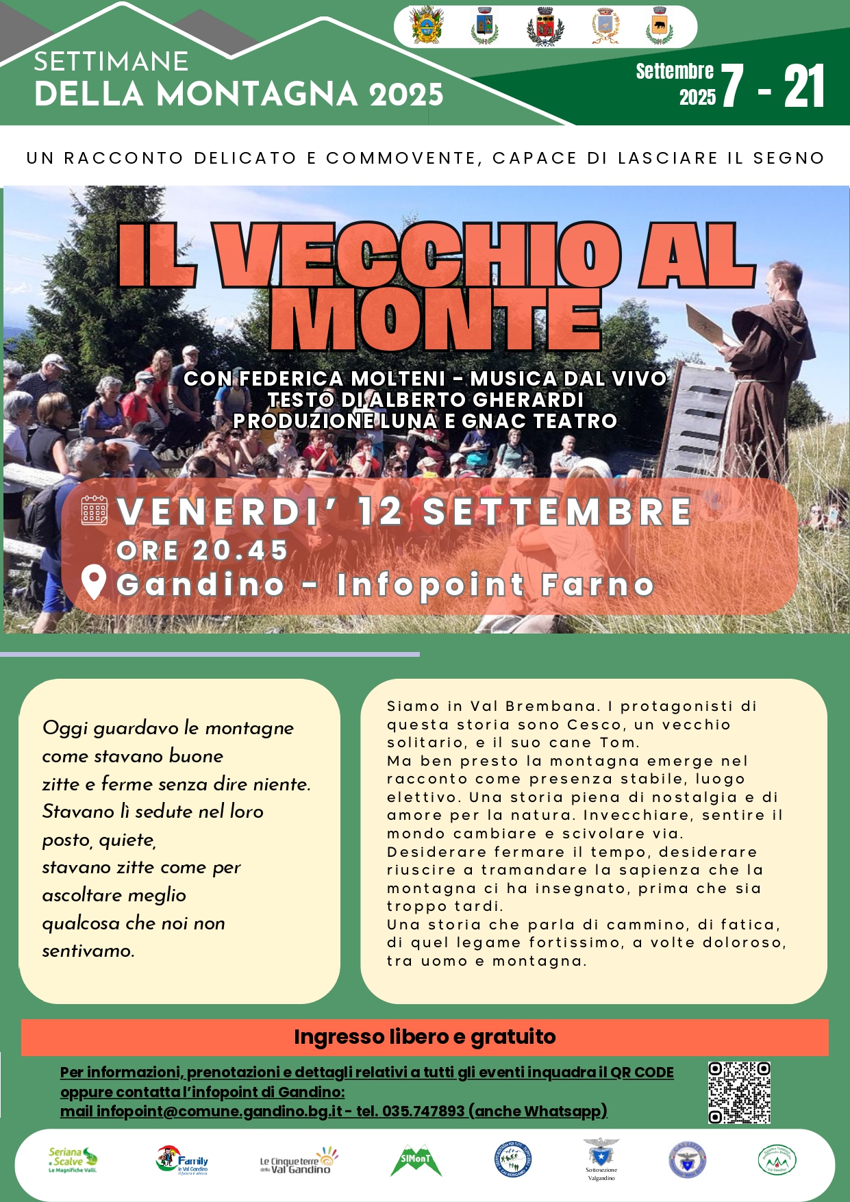 Dal 7 al 21 settembre prendono il via in Val Gandino le Settimane della Montagna, che ospiteranno numerosi eventi sul tema della montagna, dell’ambiente e della fauna locale.