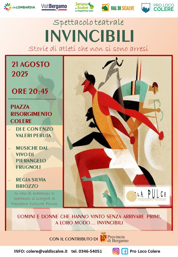 Giovedì 21 Agosto, alle ore 20:45 nella piazza principale di Colere vi attende uno spettacolo teatrale unico nel suo genere, proposto dalla compagnia teatrale “La Pulce”.