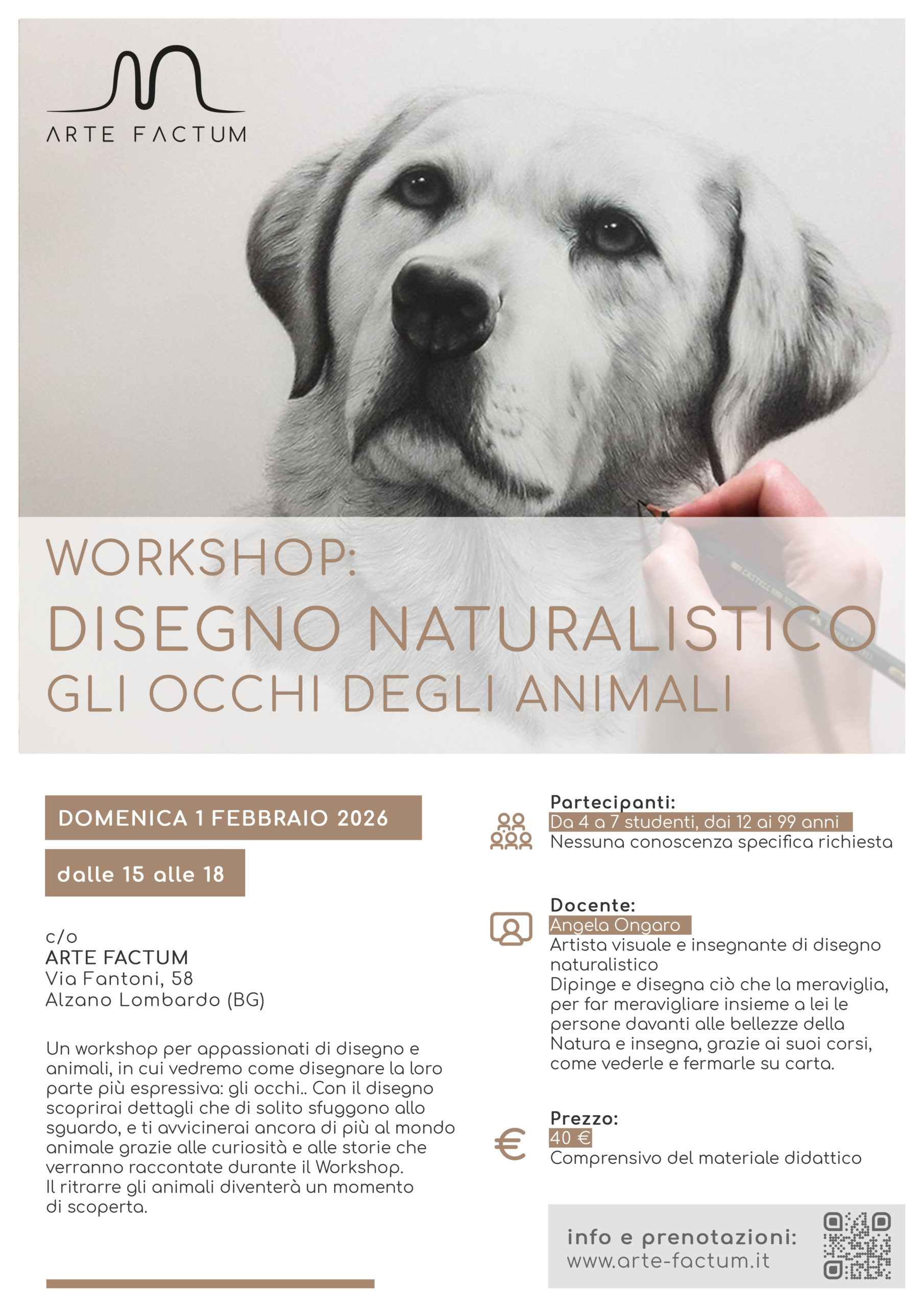 Angela Ongaro – artista visuale e insegnante di disegno in collaborazione con Arte-Factum presenta domenica 1 febbraio, ad Alzano Lombardo, un coinvolgente workshop di disegno naturalistico dedicato al tema “Gli occhi degli animali”.